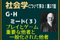 ・シンボルが他者にも共通の意味として、有意味になるためには、共通の意味世界、「一般化された他者」も想定されている必要がある。ふつうはこういう状況ならこういう意味だよね、というような前提。日本における一般化された他者は、「おはよう」といえば「おはよう」と返してくれる前提がある。もちろん、特定の日本人は「返してくれない」という反応をされる場合もあり、その他者に対するイメージも再構成されていく(客我の変化)。