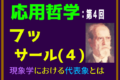 | 哲学者 | フッサール | 1859-1938 | 西洋学問は「危機」にある。意味や目的、主観、生活現実を軽視し、客観的な事実のみを重視してしまっている。現象学の登場。 |