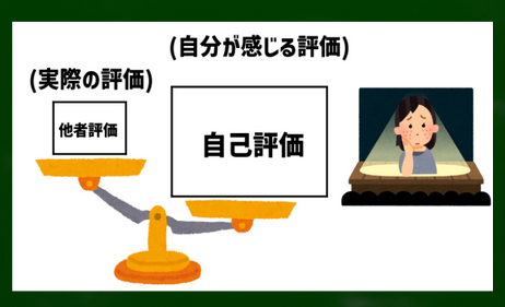 スポットライト効果は「他者が私を〇〇だと考えている」ということについて「私が◎◎」だと考え、かつ両者のイメージにズレがある事態だといえる。