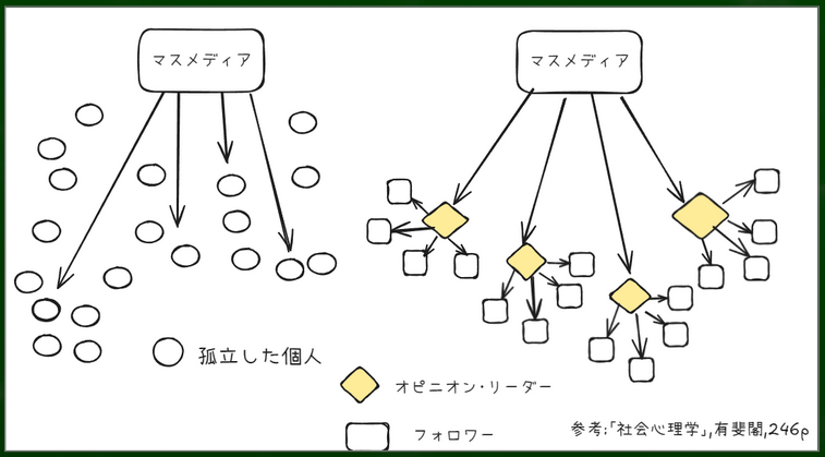 オピニオンリーダーは単にマスメディアの内容を肯定してフォロワーに流すわけではないという点は重要である。